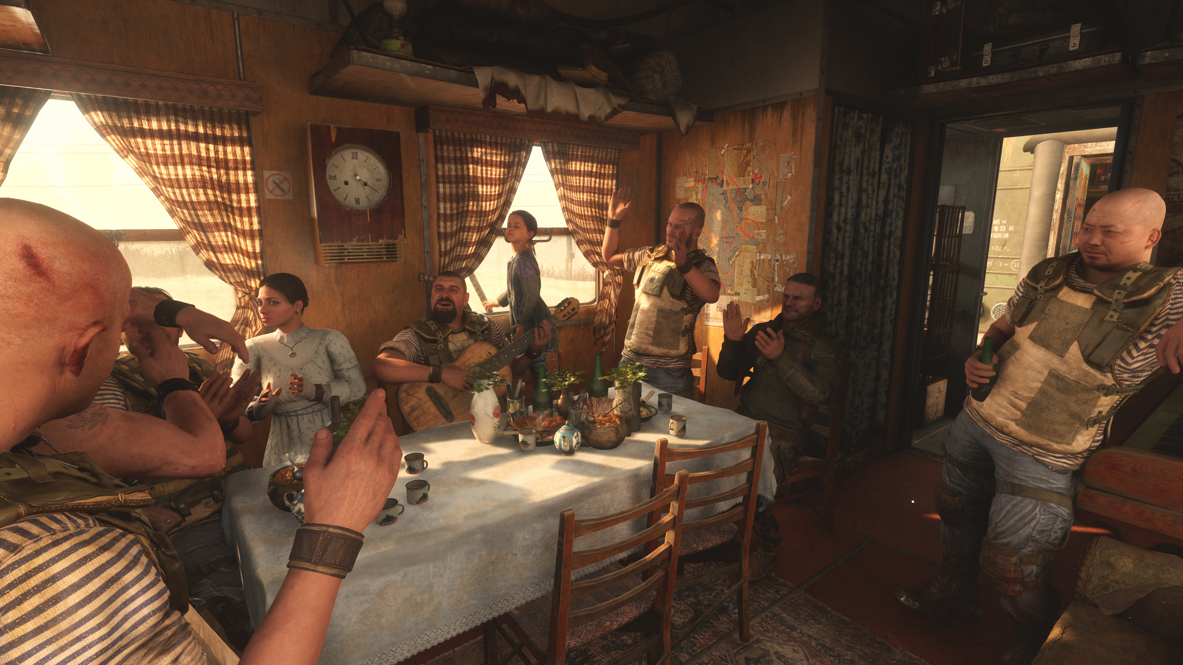 游戏指引是有一点点问题的,但是有感人的剧情,有恐怖恶心的地图,也有温馨的地铁,给我印象深刻的是,兄弟求婚后在火车上坐下唱歌那段让我想起了荒野大表哥2晚上在营地篝火旁唱歌一样,都很沉浸我享受着游戏里的角色一起团聚的幸福感。